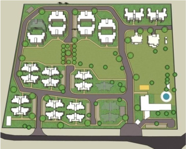 Housing Masterplan for Reliance Power Ltd. at Samarlakota (AP) in 11 acres consolidates open spaces and lays out the buildings in a site and traffic friendly way.